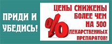 Глобальное снижение цен более чем на 500 лекарственных препаратов! У нас хорошие новости, во всей сети аптек «Дежурный аптекарь» произошло глобальное снижение цен, более чем на 500 лекарственных препаратов! Теперь цены стали еще ниже, а препараты доступнее. Лекарственные препараты, входящие в группу сниженных цен выделены в аптеке специальными ценниками со звездочкой. Ждем вас в наших аптеках, покупайте выгодно! Подробности акции уточняйте у фармацевтов.